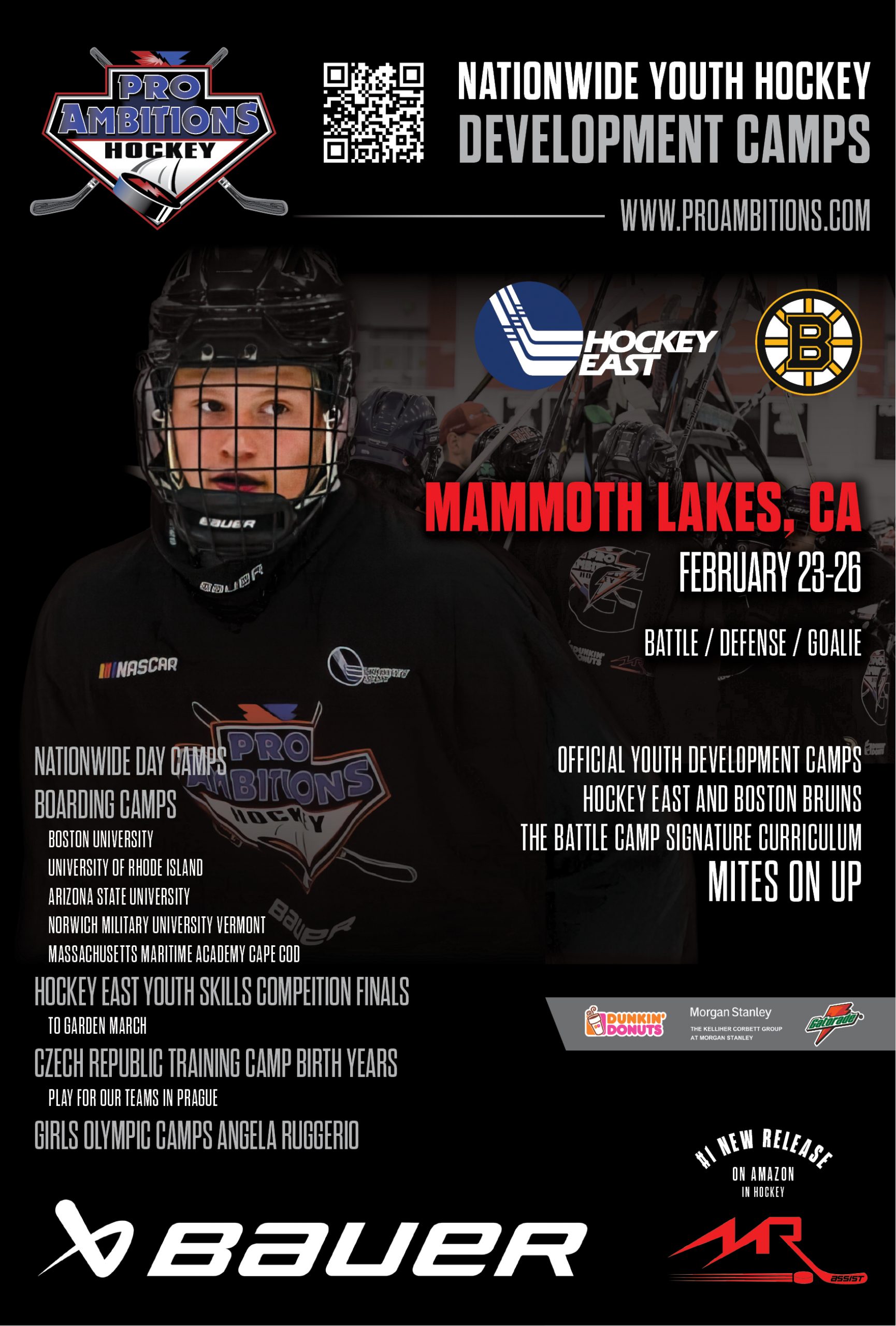 PRO AMBITIONS RETURNS! Pro Ambitions is one of the best camps in the nation, and we are thrilled to have them joining us once again in Mammoth February 23-26, 2026!Registration is open to players of all ability levels from Mites to Midgets, and costs just $525! The registration fee includes two on-ice sessions per day …